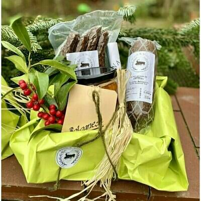 Präsentkorb (Bioland-Salami, Bioland-Bolognese im Glas, Bioland-Wiener Würstchen)